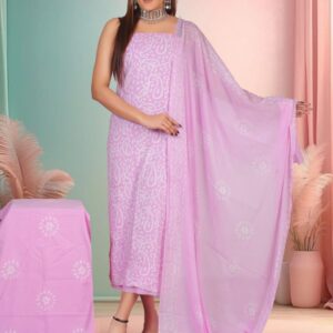 Upgrade your wardrobe with this beautifully crafted unstitched cotton suit set, designed for comfort and style. The set includes a 2.5m cotton batik-printed top, 2.25m cotton printed bottom, and a 2.20m printed cotton dupatta (approx.), giving you the perfect fabric length to design your outfit as you like.